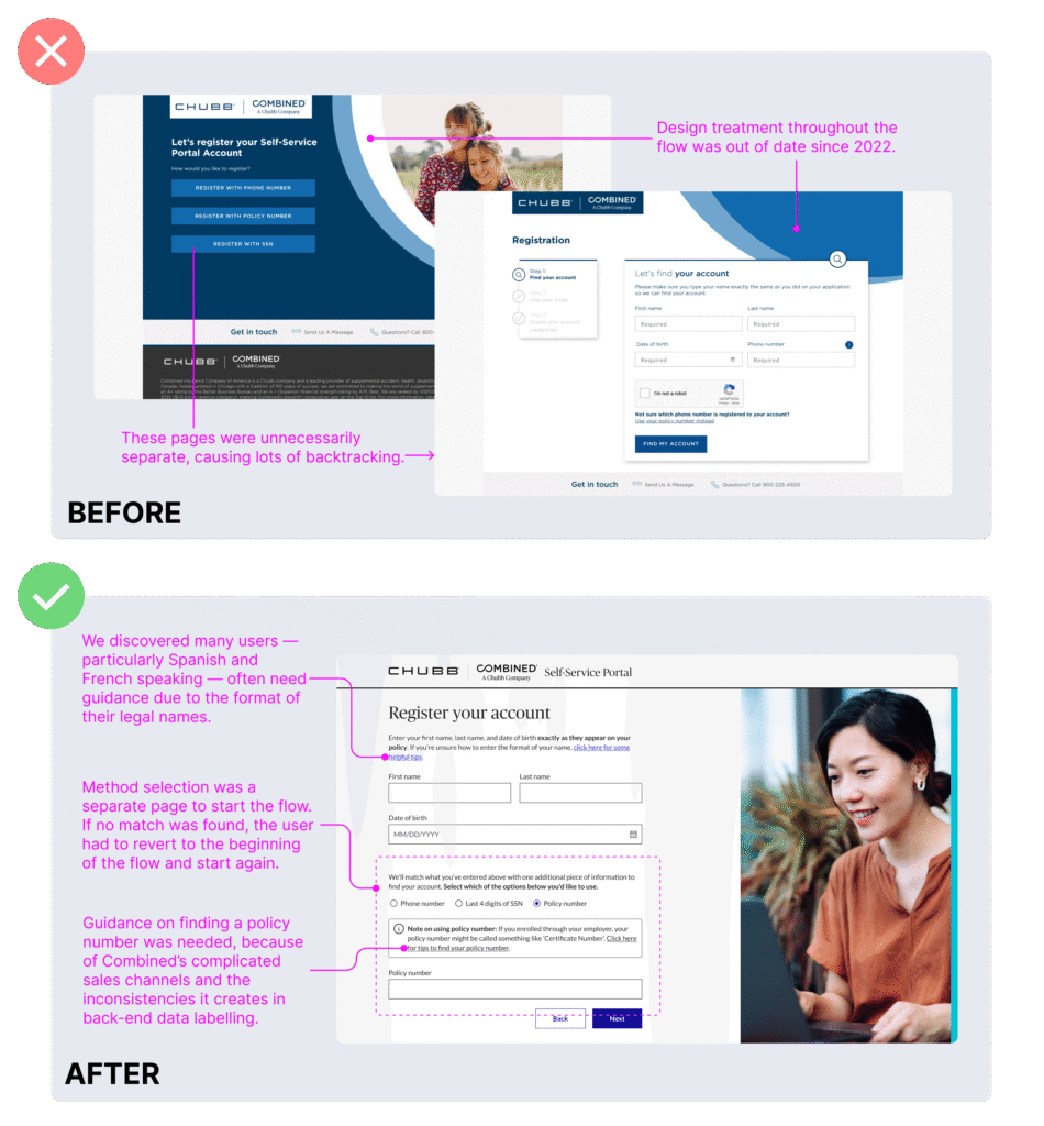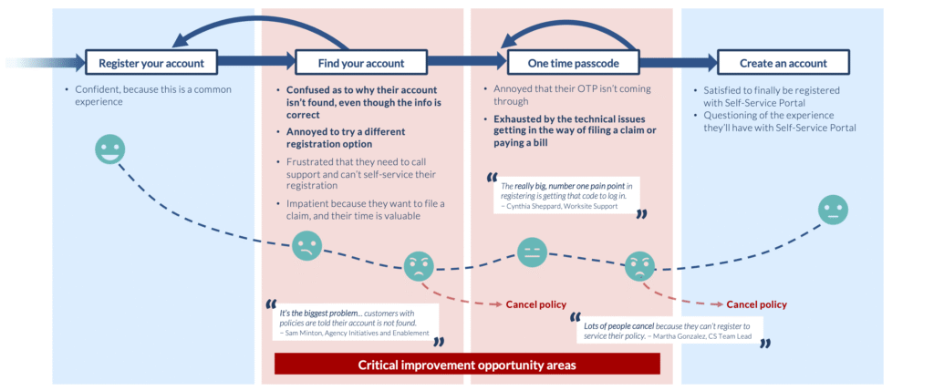 Confidence evaporated quickly when customers hit errors they didn’t understand. One-time passcodes sometimes never arrived. Messages didn’t explain what to do next. Frustrated users often abandoned the process entirely — some even canceling their policies.